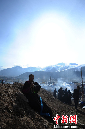 参与互动(0) 2012年4月14日,青海省玉树县民众走上结古镇东德隆钦山下的扎西大同天葬台,用煨桑、转经筒、献花等方式来祭奠逝去的亲人。两年前,玉树发生7.1级地震,造成两千多人遇难。杨艳敏 摄