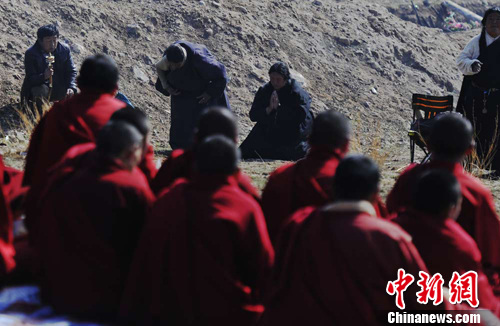 玉树地震两周年祭:僧众为亡灵诵经(2)