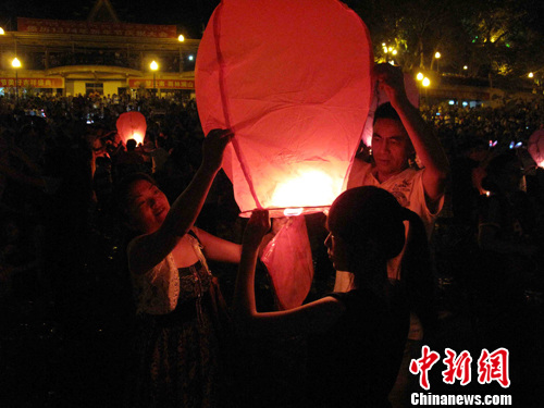 参与互动(0) 4月13日晚,云南省西双版纳州景洪市的澜沧江畔,数万名市民和游客举行祈愿仪式放飞孔明灯,打造“火树银花不夜天”的壮丽场面。据了解,傣家孔明灯代表了吉祥与祝福,总在每年泼水节的夜晚放飞夜空。图为西双版纳市民一家放飞孔明灯祈福。中新社发 顾一航 摄