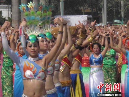 云南西双版纳万人傣族手势舞创世界纪录(3)