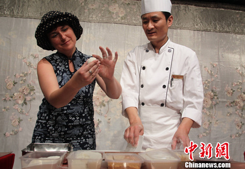 驻华使节夫人学习制作北京小吃“艾窝窝”