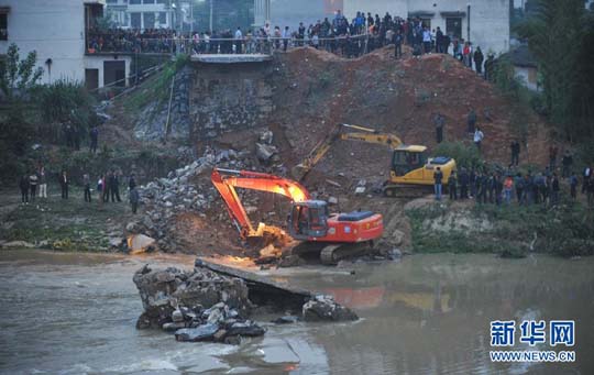 参与互动(0) 搜救人员使用挖掘机挖掘桥体残骸(5月13日摄)。经过连续三天的紧张打捞搜救,截至5月15日晚8时,救援人员在湖南平江大桥垮塌现场已经找到4具遇难者遗体,其中包括1名儿童。15日晚搜救工作仍在紧张进行中。新华社记者 白禹 摄