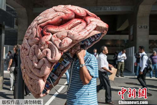 2012年5月21日,巴西圣保罗,上百个创意电话亭亮相街头,引来众人围观。