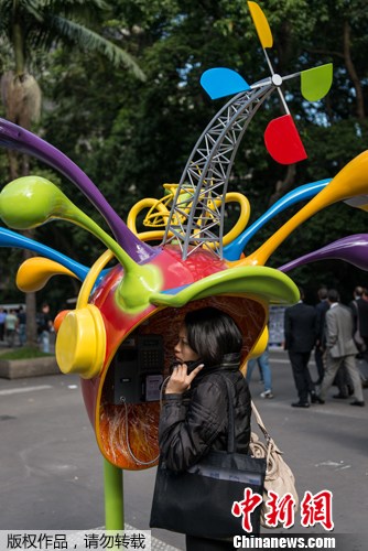 2012年5月21日,巴西圣保罗,上百个创意电话亭亮相街头,引来众人围观。