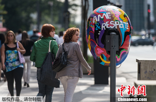 2012年5月21日,巴西圣保罗,上百个创意电话亭亮相街头,引来众人围观。