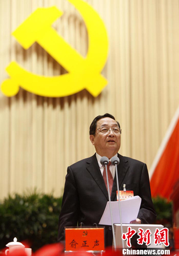 中国共产党上海市第十次代表大会圆满完成各项任务,于5月22日上午在世博中心胜利闭幕。图为俞正声同志主持会议并讲话。 刘歆 摄