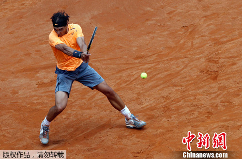 图为纳达尔在比赛中。