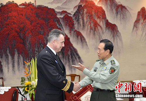 5月22日,中国人民解放军副总参谋长魏凤和在北京八一大楼会见了来华进行正式友好访问的芬兰国防副参谋长卡鲁马。中新社发 廖攀 摄