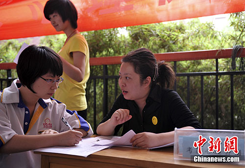 5月22日,在中国大、中学生心理健康行动日来临之际,山东师范大学附属中学举办心理健康周活动,为处在高考最后冲刺阶段的学子开“心理处方”, 帮助他们调节考前心态,缓解心理压力。图为心理辅导中心的老师为高考生支招解考前焦虑。中新社发 张勇 摄