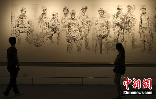 “同在蓝天下——为农民工塑像中国画主题创作展”当日在这里开幕,展览由中国艺术研究院、中国国家博物馆主办,170余幅中国画只有一个主题——“为农民工塑像”,画中人拥有统一的名称——农民工,这是专为该群体创作的艺术品首次走进国家最高级的博物馆。