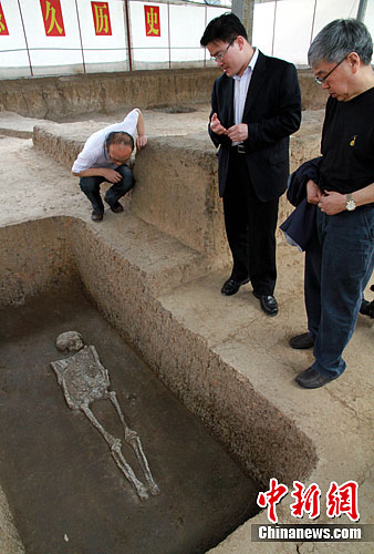 5月22日,位于江苏省张家港市的东山村遗址内,一处马家浜文化时期的高等级墓葬颇受学界瞩目,据介绍,该墓葬主人为中年女性,发掘时曾出土包括21件玉器等诸多陪葬物。中新社发 孙自法 摄