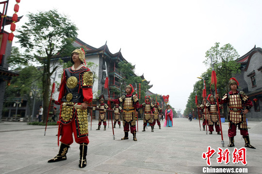 5月31日,来自澳门、上海、北京等省市的象棋高手约300人,来到重庆长寿古镇,举行首届长寿“健康杯”象棋大赛。图为市民玩起了穿越,为庆祝全国象棋大赛首聚长寿古镇。陈超 摄
