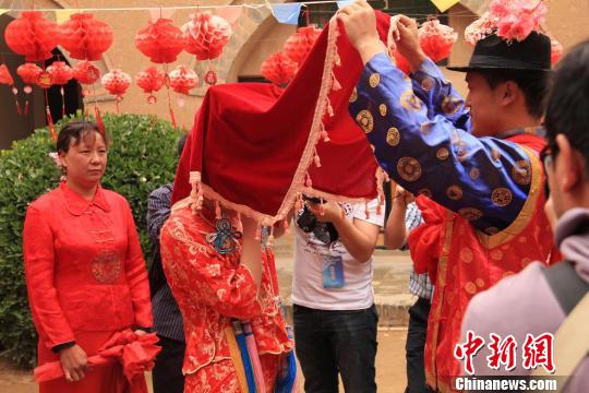 5月31日,地坑院保存较为完好的河南陕县庙上村,锣鼓喧天,鞭炮齐鸣,一支浩浩荡荡的迎亲队伍从远处走来,新郎骑着高头大马,新娘坐着八抬大轿,然后下到地坑院,在古乐声中举行拜天地仪式。这就是豫西地坑院的传统婚俗。
