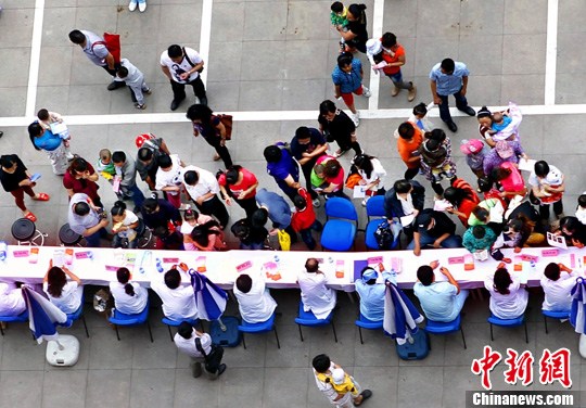 6月1日,北京儿童医院隆重纪念建院70周年,院方医生在医院门口设台,为儿童义务就诊,为家长答疑解惑,受到群众敬仰和爱戴。中新社发 宋吉河 摄