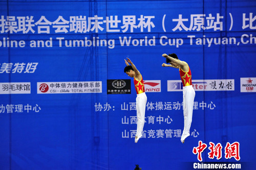 6月2日,2012年国际体操联合会蹦床世界杯首站比赛在山西太原拉开帷幕。中新社发 张云 摄