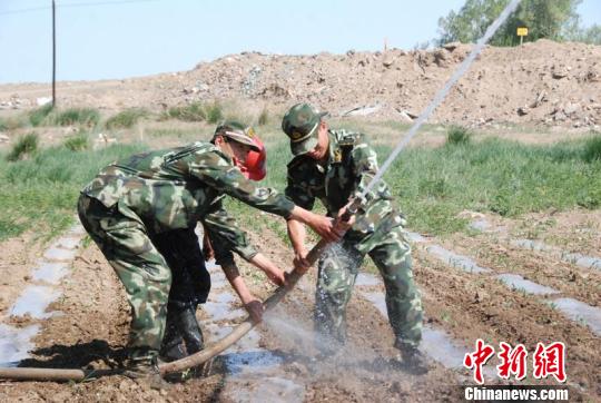 武警新疆吉木乃边防检查站这几天组织官兵走进新疆农十师一八六团五连粮田帮助困难农民“毛大叔”浇灌了近百亩玉米田。李君蕾 摄
