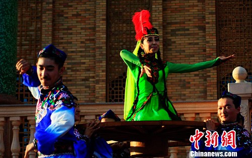 新疆哈密地区近日以“文化遗产与文化繁荣;活态传承,重在落实”为主题,在哈密市十二木卡姆中心楼前广场举办了丰富多彩的非物质文化演出,庆祝文化遗产日,同时丰富了市民的文化生活。