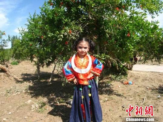 2012年6月12日,叶城县举办石榴花节,当地小朋友精心打扮留念 朱景朝 摄