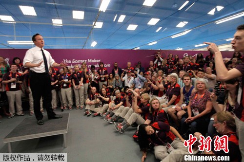英国首相卡梅伦慰问伦敦奥运会志愿者(2)