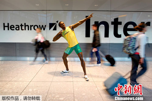 博尔特蜡像现身希思罗机场为伦敦奥运造势(2)