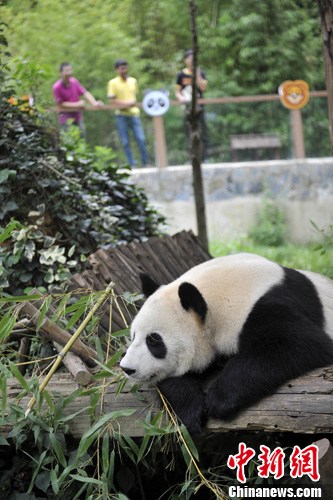 7月13日,市民来到云南野生动物园探望即将回家的大熊猫芊芊。2008年四川汶川大地震,三只大熊猫芊芊、思嘉、美茜来到位于昆明的云南野生动物园寄养。芊芊将7月16日启程,思嘉和美茜则会在8月底回去。中新社发 刘冉阳 摄