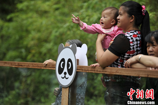 7月13日,市民来到云南野生动物园探望即将回家的大熊猫芊芊。2008年四川汶川大地震,三只大熊猫芊芊、思嘉、美茜来到位于昆明的云南野生动物园寄养。芊芊将7月16日启程,思嘉和美茜则会在8月底回去。中新社发 刘冉阳 摄