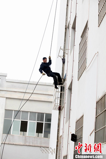 图为特警队员高空索降。刘占昆 摄