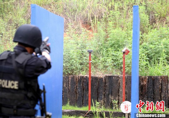 图为特警队员远距离击中一块面积为20厘米见方的钢板靶。刘占昆 摄