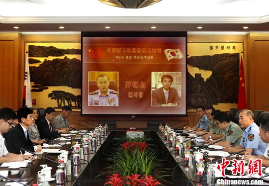 7月31日上午,中国人民解放军副总参谋长马晓天与韩国国防部副部长李庸杰,在北京八一大楼共同主持中韩第二次国防战略对话,双方就地区安全形势、两国、两军关系等问题深入交换了意见。中新社发 宋吉河 摄