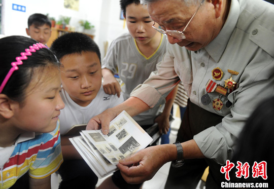 7月31日,八一建军节来临前夕,八旬老人汤益民来到合肥市蜀山区龙居社区颐和中学,给孩子们上了一堂别开生面的历史课,讲述他们参加抗美援朝战争和对越自卫反击战时的情景。