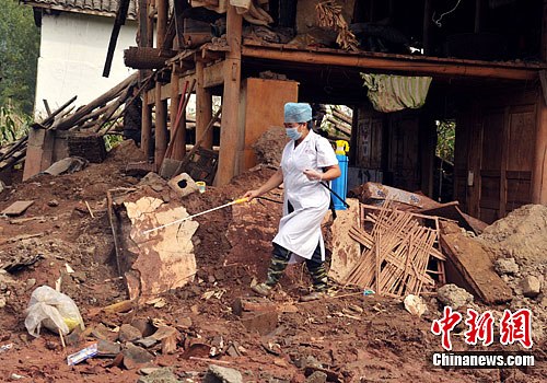 9月4日,四川喜德灾后防疫全面展开,68名卫生工作人员深入灾区,设立临时医疗点,进入受灾民众安置点和废墟展开消毒、灭蚊、灭鼠等工作,并对生活垃圾进行无害化处理,及时处理有可能发生的发热、腹泻等疾病,确保大灾之后无大疫。
