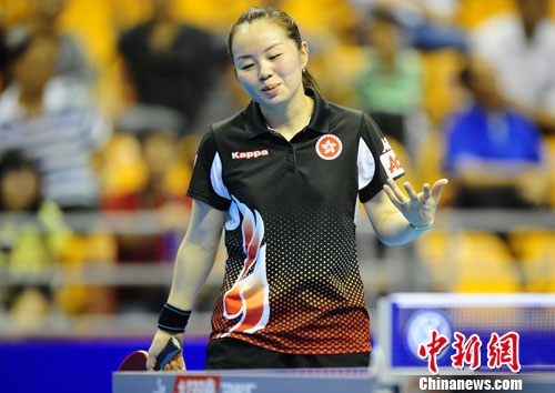 9月22日,2012女子乒乓球世界杯第二天比赛在湖北省黄石市举行,香港队两名选手帖雅娜和姜华珺双双爆冷折戟小组赛,无缘八强。