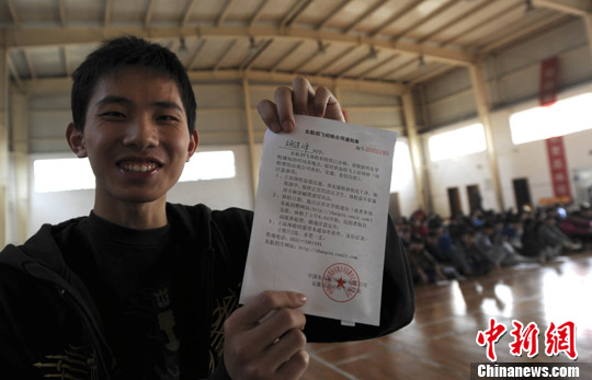 图为已经通过飞行学员体检初检的“90后”学生。中新社发 韩苏原 摄