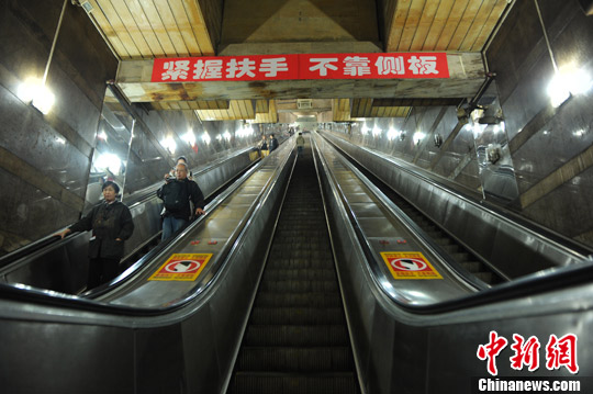 11月15日,重庆市民正在搭乘扶梯超长扶梯。中新社发 陈超 摄