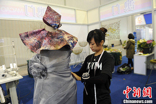图为澳门参赛选手在现场进行服装设计。张浪 摄