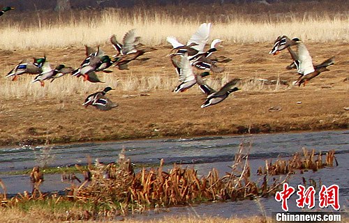 11月中旬,在位于新疆温泉县的北鲵生态园里,由于这里水草充沛,没有企业污染,气候冬季比其他地方暖和很多,因此成了许多鸟类的冬季乐园。肖俊扬 摄