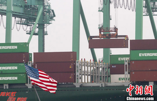 图为货柜箱从一货轮上卸下。中新社发 林戈 摄