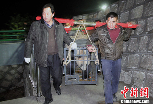1月22日晚,一雄一雌两只大熊猫,由四川雅安市的中国保护大熊猫研究中心碧峰峡大熊猫基地,飞抵浙江德清县境内的国家级湿地公园下渚湖湿地风景区。中新社发 姚学良 摄 图片来源:CNSPHOTO