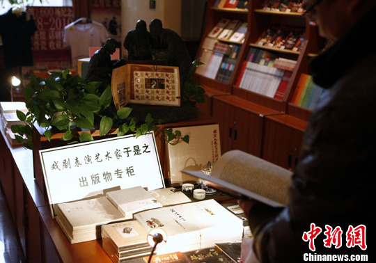 图为一位读者在于是之出版物专柜上拿取剧本阅读。中新社发 李慧思 摄