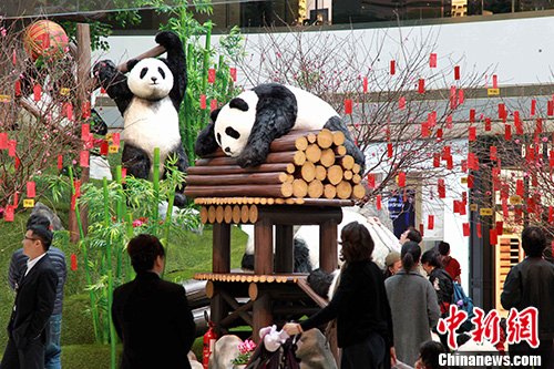 1月23日,众多顾客穿行在熊猫乐园不亦乐乎。中新社发 洪少葵 摄