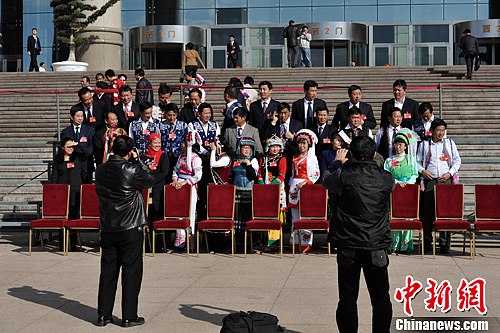1月28日,参会的少数民族代表在合影留念。当日下午,云南省第十二届人民代表大会第一次会议在昆明闭幕。中新社发 刘冉阳 摄