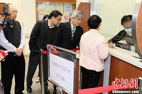 澳门“母婴临时支持计划”1月28日正式启动,开始接受1岁或以下婴儿家长登记购买奶粉。截止今日下午5时,共有539人自愿登记参加“母婴临时支持计划”。图为澳门卫生局官员到相关站点视察运作的情况。中新社发 龙土有 摄
