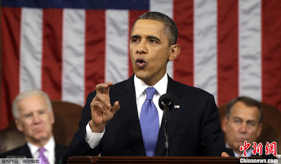 当地时间2013年2月12日,在美国首都华盛顿,美国总统奥巴马在国会山发表国情咨文演说。