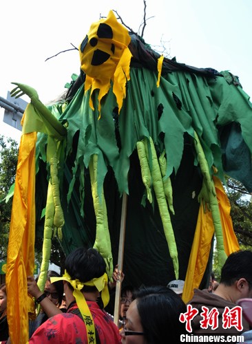 图为台湾民众高举“核魔”上街反核大游行,向当局表达废核立场。中新社发 王东明 摄