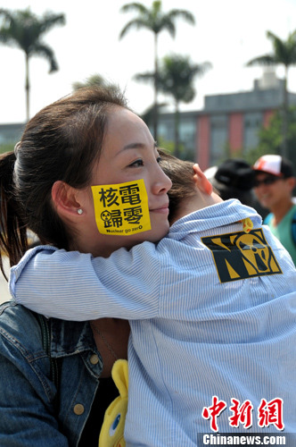 图为台湾母子上街“反核”。中新社发 王东明 摄