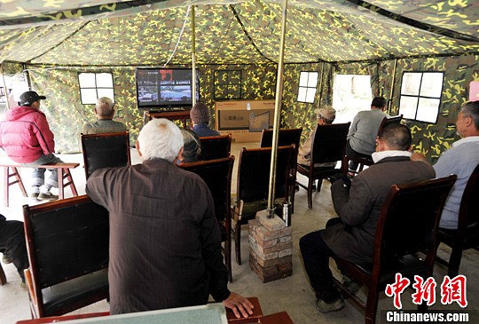 5月11日,记者走进震区芦山龙门敬老院,探访生活在这里的61位老人的震后生活。图为敬老院的老人在娱乐。安源 摄