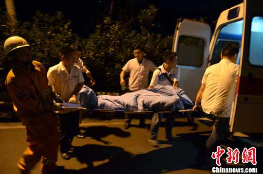 图为伤者被紧急送往医院。中新社发 张骥 摄