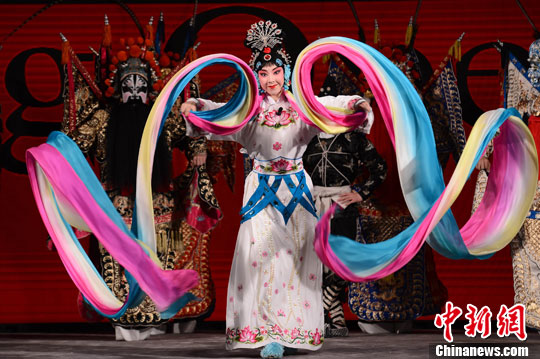 5月23日晚,第一部以纪录影像来解读京剧艺术,面向全世界展示的电视纪录片作品——8集大型纪录片《京剧》首映式在北京梅兰芳大剧院举行。图为首映式上,来自中国国家京剧院的艺术家们奉上了精彩的演出。中新社发 李学仕 摄