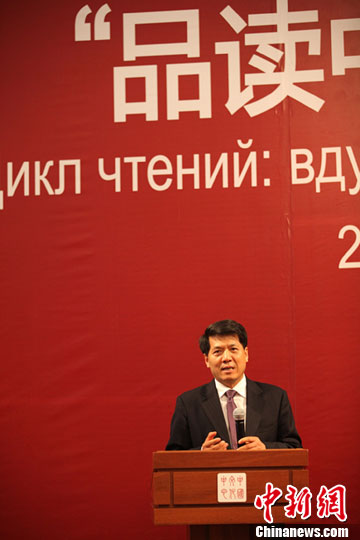 莫斯科中国文化中心5月23日晚举行俄文版《三字经》新书推介会,该推介会是20-24日“品读中国”读书周中的一项活动。图为中国驻俄联邦大使李辉出席本次推介会。中新社发 贾靖峰 摄