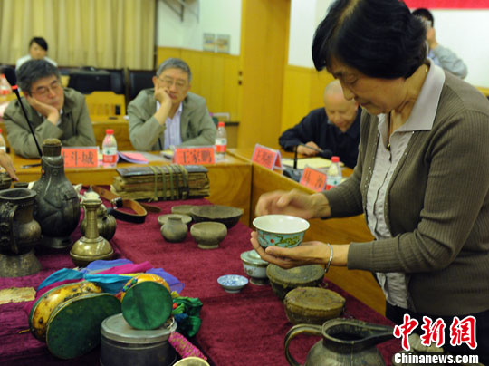 记者5月24日从四川金川县获悉,经过北京大学、清华大学、故宫博物院等20多名专家的考古调查,初步确认该县马尔帮乡独足沟村境内的一处古城遗址为东女国王城遗址。图为中国文化遗产研究院研究员刘兰华教授现场查看发现的珍贵文物。中新社发 刘忠俊 摄